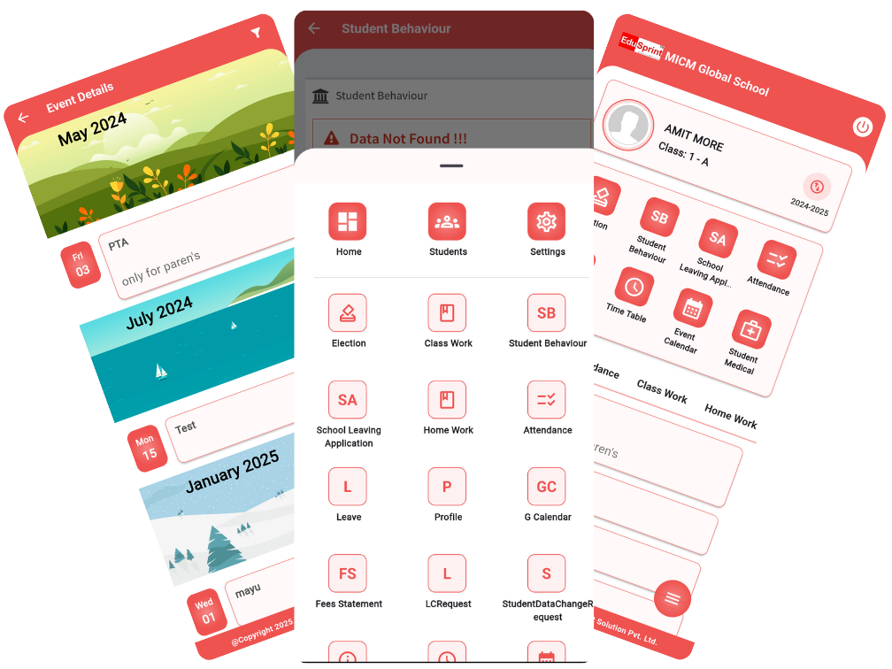 EduSprint is an all-in-one school management application built to simplify daily operations and strengthen communication. It provides a unified platform for students, teachers, staff, and parents, making it easier to access information, track progress, and manage school activities. With EduSprint, schools can focus more on learning while the app handles the administration seamlessly.